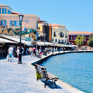 t-shirts, the air is ripe with the scent of fresh fish, olive wood, and leather drifting from open workshop doors. Colorful handwoven textiles sway in the breeze next to stalls stacked with shelves of hand-painted ceramics. It all stirred memories of our wanderings through the souks of Marrakesh in 2022—only here, the pace was slower, and the energy quieter. Chania doesn’t try to dazzle with postcard perfection. Instead, it leans into its centuries—layered, lived-in, and wise.